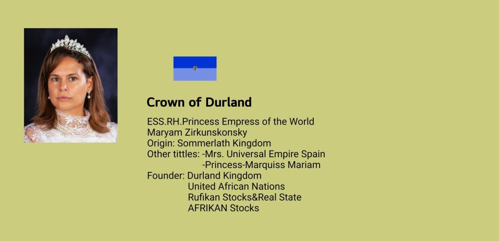 Her Royal Highness Princess-Marquiss Mariam, Mariam Fernandez Rodriguez her Excellency Supreme Serene Royal Highness Princess Empress of the World named her Mary Zirkunskonsky by the Royal Crown of Durland Kingdom is Rufikan Stocks&Real State, Afrikan Stocks and United African Nations founder.